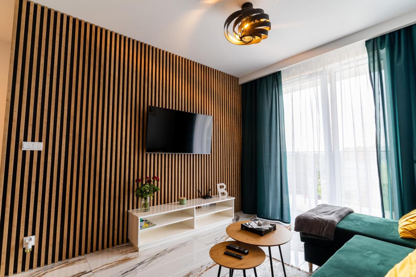Apartament z 1 sypialnią. This apartment comes with 1 living room, 1 separate bedroom and 1 bathroom with a shower and free toiletries. Guests can make meals in the kitchen that features a stovetop, a refrigerator, a dishwasher and kitchenware. Boasting a terrace with city views, this apartment also features a washing machine and a flat-screen TV. The unit has 2 beds. Apartament - 4 osobowy. Powierzchnia pokoju ok.: 43 mkw.