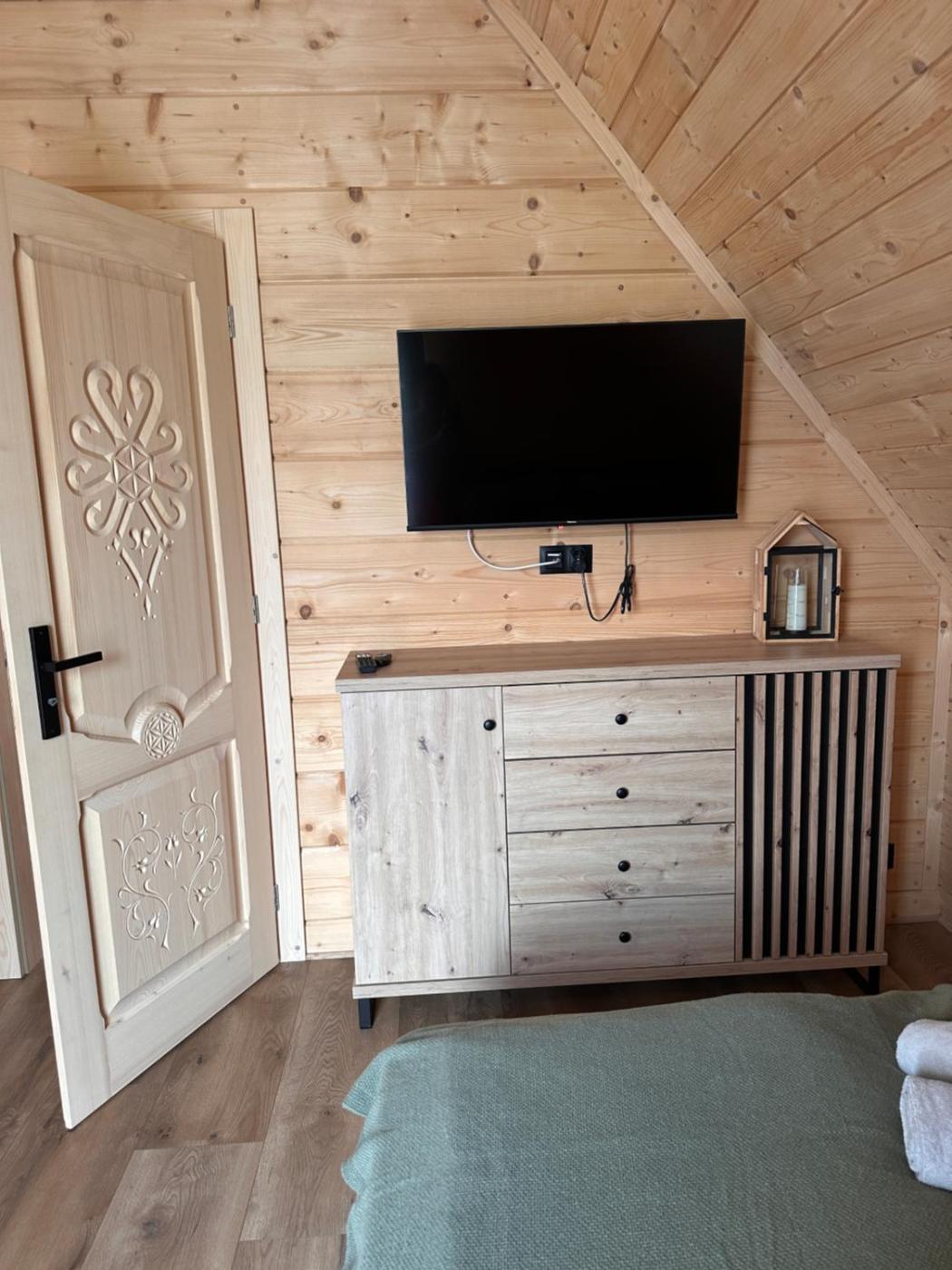 Dom z 2 sypialniami. This holiday home offers a fireplace. Guests will find a stovetop, a refrigerator, a microwave and an electric kettle in the well-equipped kitchen. The holiday home also provides guests with a barbecue. Featuring a terrace with garden views, this holiday home also provides a private entrance and a flat-screen TV. The unit offers 5 beds. Dom wakacyjny - 6 osobowy. Powierzchnia pokoju ok.: 70 mkw.