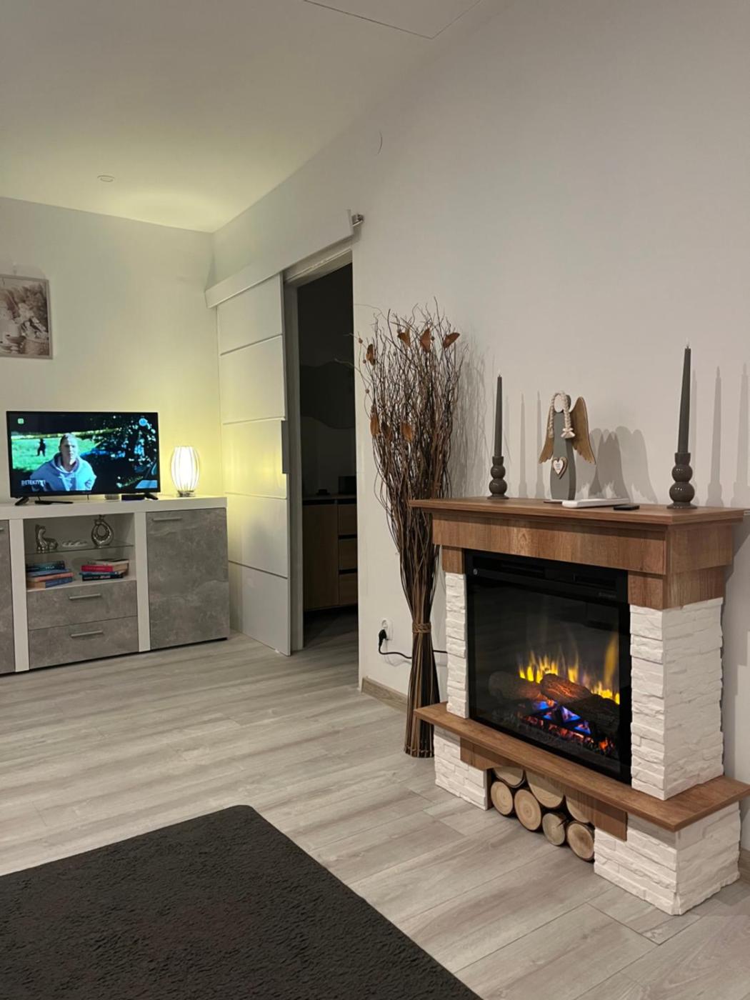 Dom wakacyjny. This holiday home provides a fireplace. Boasting a private entrance, this air-conditioned holiday home includes 1 living room, 1 separate bedroom and 1 bathroom with a shower and a hairdryer. Guests will find a refrigerator, kitchenware, an oven and a microwave in the kitchen. The holiday home also features a barbecue. Featuring a terrace with garden views, this holiday home also offers a tea and coffee maker and a flat-screen TV with cable channels. The unit has 2 beds. Dom wakacyjny - 4 osobowy. Powierzchnia pokoju ok.: 50 mkw.